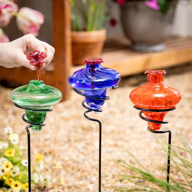 Art Glass Staked Hummingbird Feeder