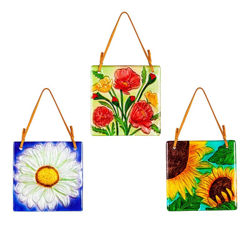 4.5" Handpainted Embossed Glass Flowers Suncatcher