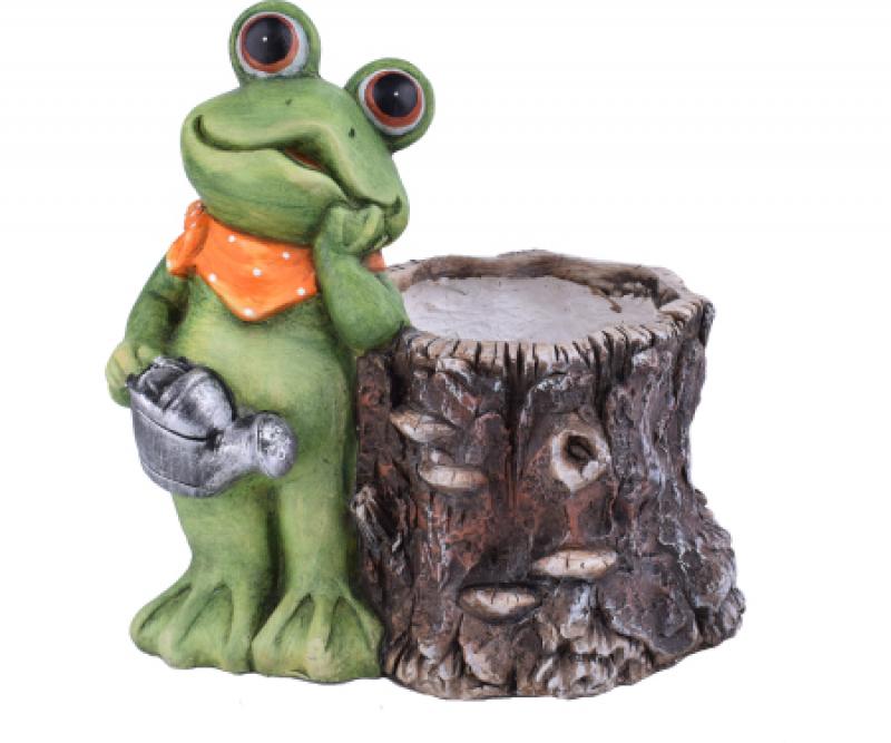 Colorful Frog Planter Log Frog 12.6"H